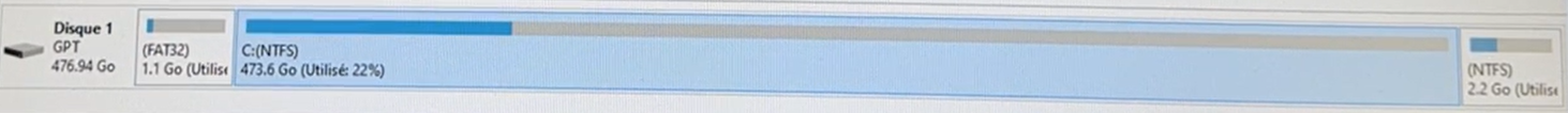 A droite on a 4 Go non alloué et une partition NTFS de 875 Mo